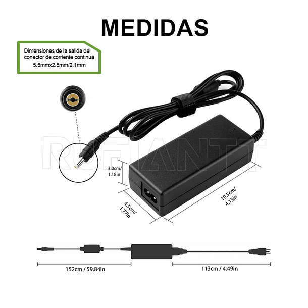 Conector de Salida: Centro positivo de 5.5mm x 2.1mm