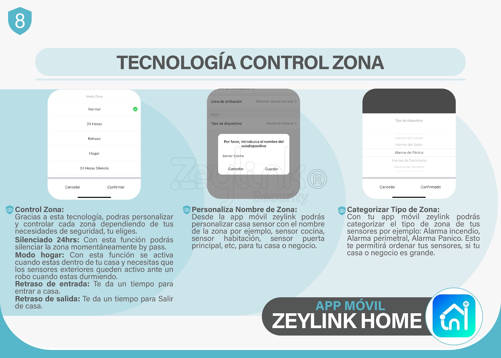 a. Configura tu Zona: Gracias a esta tecnología, podras personalizar y controlar cada zona dependiendo de tus necesidades de seguridad, tu eliges