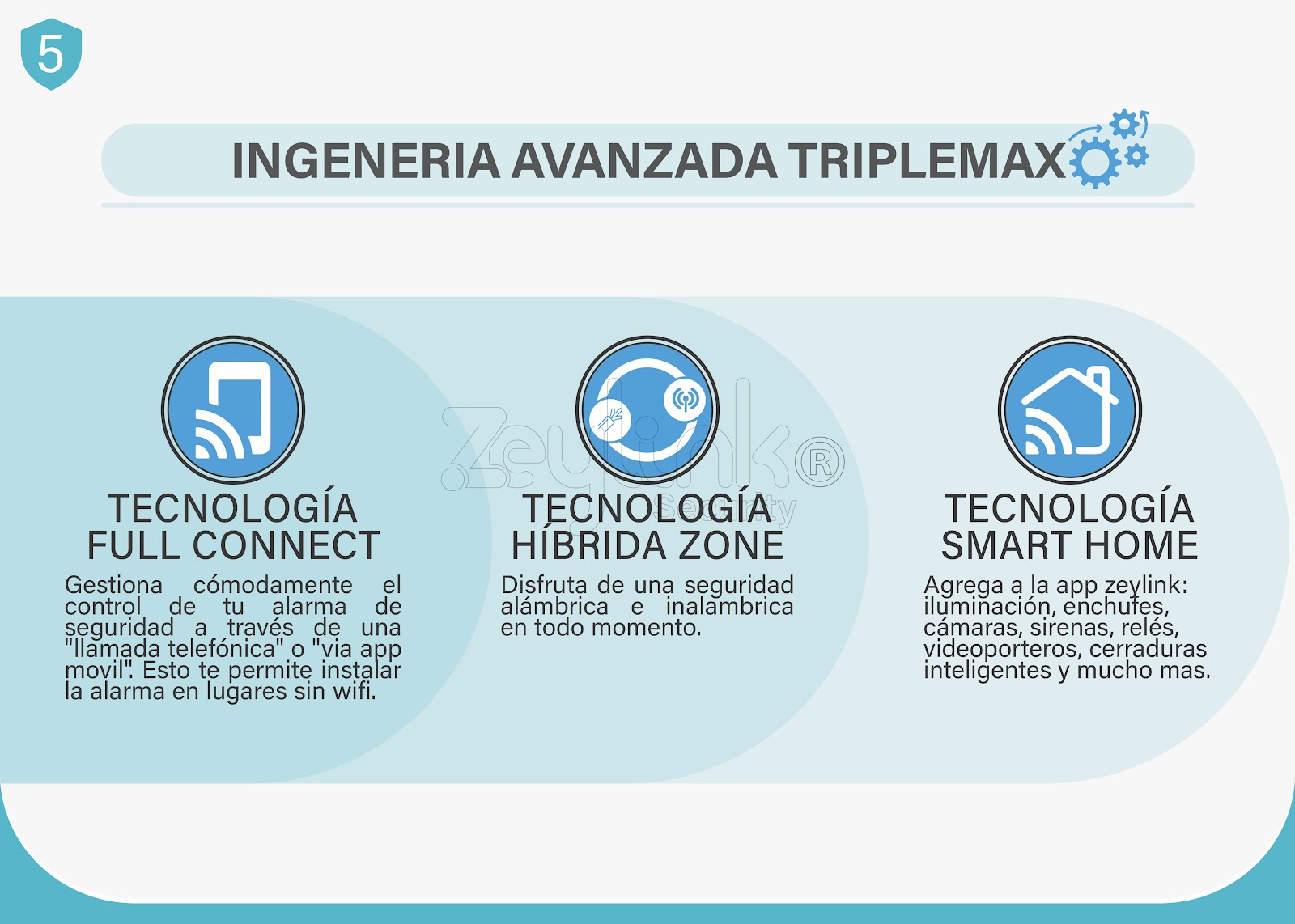 d. Tecnología Smart Home: La Tecnología Smart Home, te permite agregar a la app zeylink: iluminación, enchufes, cámaras, sirenas, relés, videoporteros, cerraduras inteligentes y mucho mas, para que no tengas que tener muchas apps en tu celular