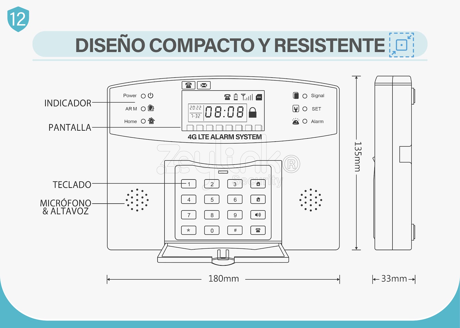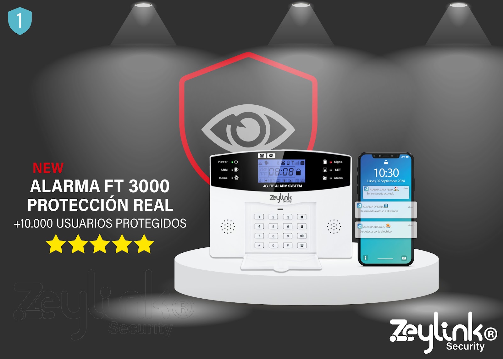 La Alarma de seguridad FT3000 4G es un avanzado sistema de protección para casa y negocios que se conecta a través de la red 4G de ultima generación, podrá realizar alertas inmediatas de llamada y Mensaje de texto (SMS). Gracias a la presencia de un micrófono y altavoz incorporados en tu alarma te permitirá comunicarte bidireccional, por lo que puedes escuchar y hablar a través de alarma para disuadir al intruso. Además tu alarma se puede conectar al Wifi para proporcionar una conexión a internet y tener el control total desde cualquier parte del mundo con tu app móvil Zeylink.