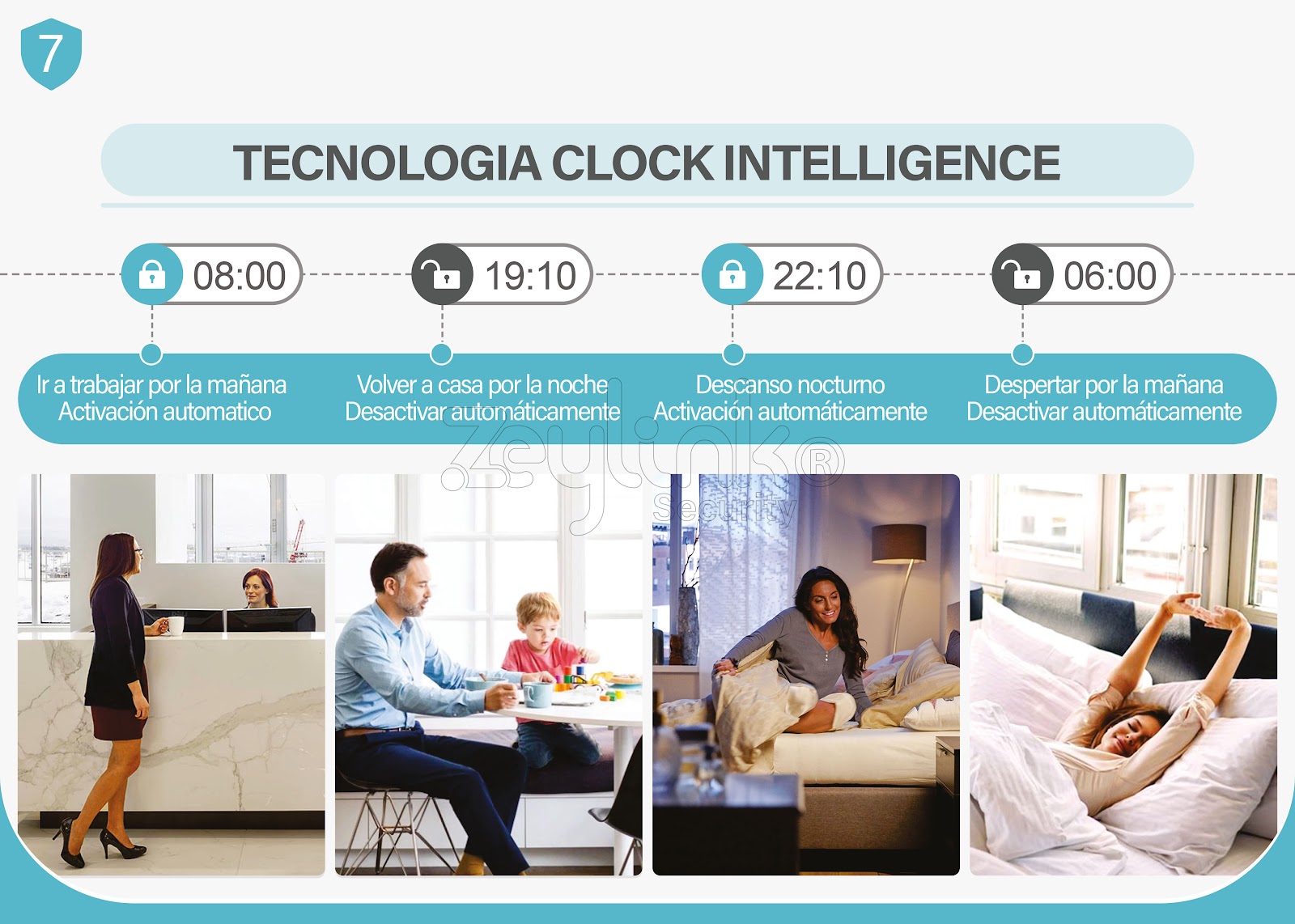 Lleva tu seguridad al siguiente nivel, si tienes hábitos de salida y entrada, gracias a la función Clock Intelligence, podrás programar el armado y desarmado con hora y fecha de lunes a domingo, para que te olvides de estar armando y desarmando tu alarma.