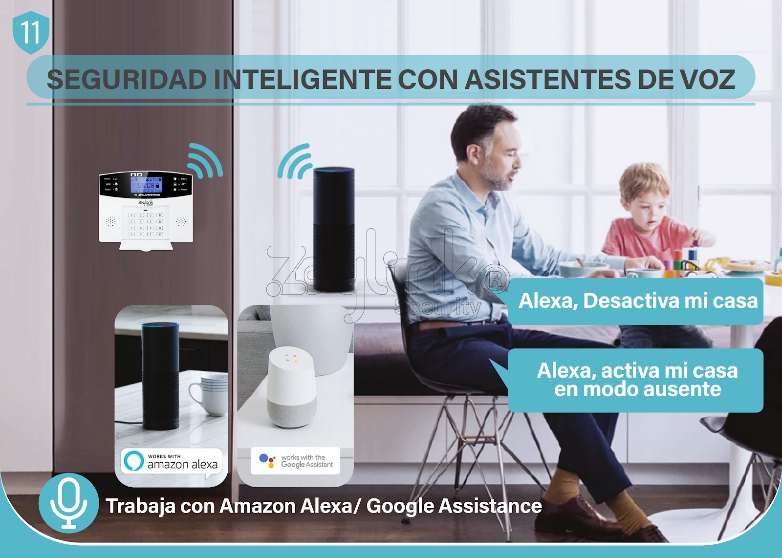 Compatible con Amazon Alexa y Google Assistant, puedes controlar tu sistema de alarma con simples comandos de voz. Activa o desactiva la alarma sin siquiera levantar un dedo.