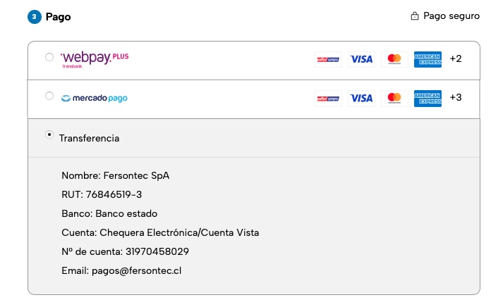 Aceptamos tarjetas de crédito, débito, transferencias y otros métodos seguros. Elige el que más te acomode y confirma tu pago.