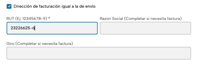 - Factura: Ingresa el RUT de tu empresa y completa los datos correspondientes si necesitas factura.