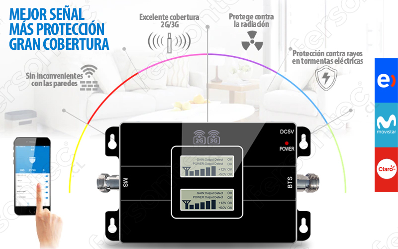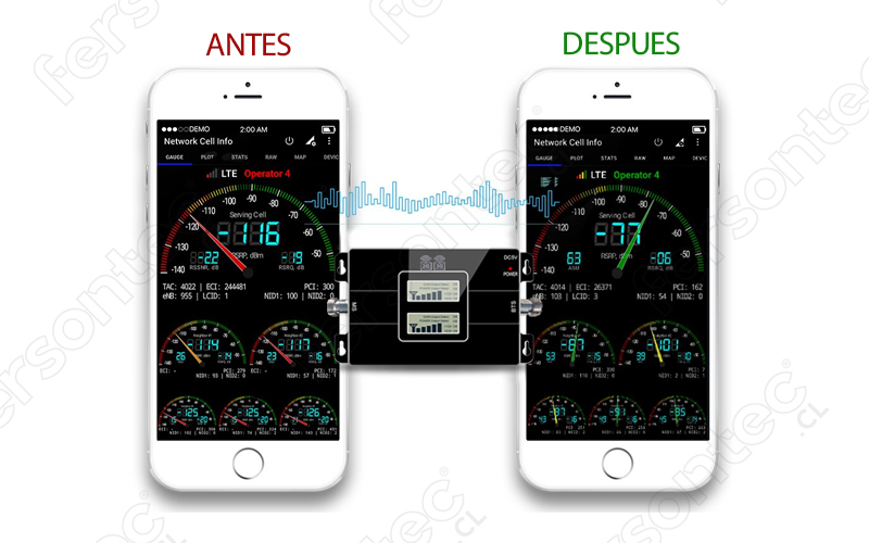 Una vez instalado tu Kit Repetidor/Amplificador de Señal, podrás notar de forma inmediata como ha incrementado y acentuado la señal de tu operador móvil, evitarás tener que estar continuamente buscando señales sin poder conseguir la intensidad que necesitas. Adquiriendo este Kit tendrás asegurada la ampliación de cobertura, la que te permitirá estabilidad y fuerza en tu conexión y, para asegurarlo, está la posibilidad de descargar una aplicación móvil que te asistirá con un diagnóstico de potencia de señal, todo de forma muy simple y cómoda.