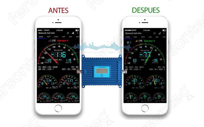 Cuando ya tengas instalado tu Kit Repetidor de Señal, te darás cuenta de inmediato del aumento en la señal de tu celular, evitarás tener que estar de un lado a otro para encontrar estabilidad y tu señal nunca más se verá afectada ni dependerá del sitio donde estés. La ampliación de cobertura está 100% garantizada y, para comprobarlo, puedes descargar una aplicación móvil y realizar un diagnóstico de cómo la potencia de la señal se incrementa al emplear el Repetidor de Señal móvil.