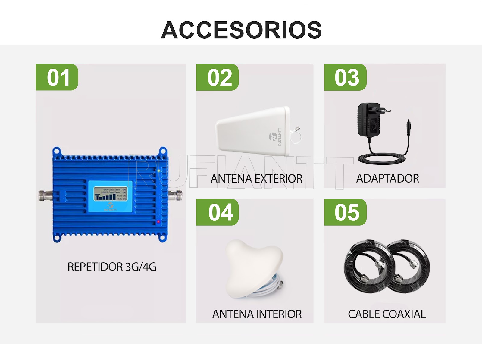 Sólo conecta ambas antenas a su cable coaxial para luego unirlos a cada uno de los extremos del Repetidor de Señal; la antena exterior afuera apuntando hacia la torre del operador más cercano y la interior ubicarla dentro de la residencia, de esta manera, todos los integrantes disfrutarán de la considerable señal que entrega este dispositivo.
