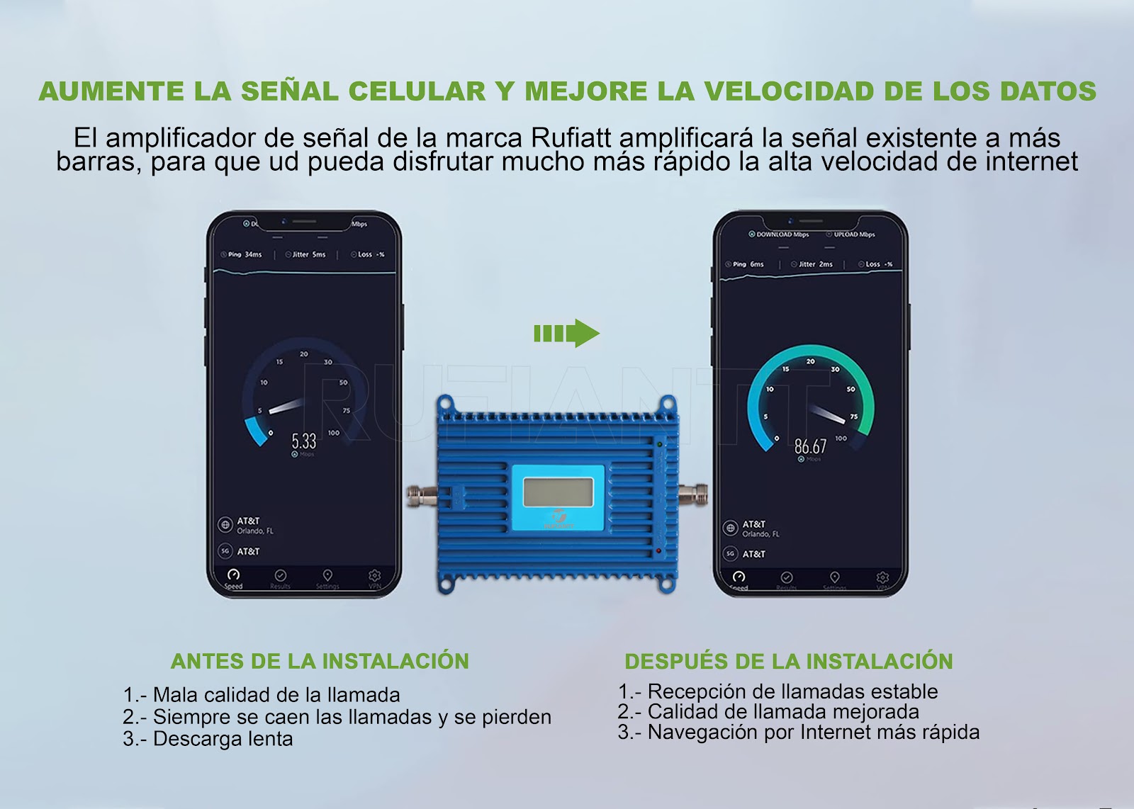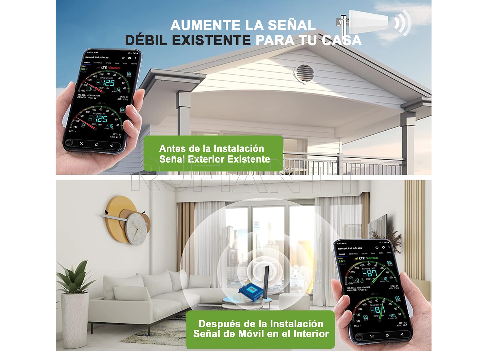 Una vez tengas montado correctamente tu Kit Repetidor de señal de celular, te darás cuenta inmediatamente del incremento de tu red móvil, podrás estar en cualquier sitio del lugar de instalación sin que la señal se vea afectada, esto debido a la ampliación de cobertura producida con la instalación del dispositivo. Te garantizamos total funcionamiento, inclusive, puedes descargar una app móvil para poder realizar diagnósticos de la potencia de la señal del operador y confirmar que tu compra ha sido todo un éxito.